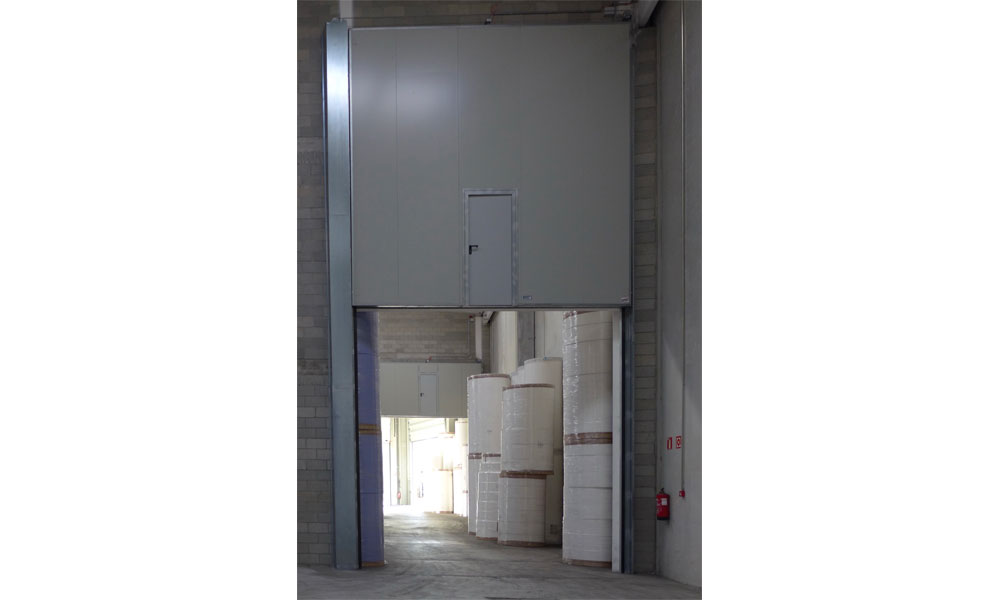 En zonas en las que se requiera unos salida de emergencia, se puede optar por insertar una puerta cortafuegos peatonal en la puerta guillotina.